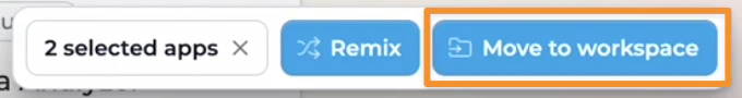 Moving apps to workspace allows you to transfer apps you’ve created from one workspace to another within your organization. This feature helps you reorganize your projects without the need to remix or duplicate apps when your workspace needs change. This is particularly useful when you initially create an app in one workspace but later decide it would be better suited in a different workspace, or when you need to transfer personal projects to team workspaces.Watch How to Move Apps to Workspace