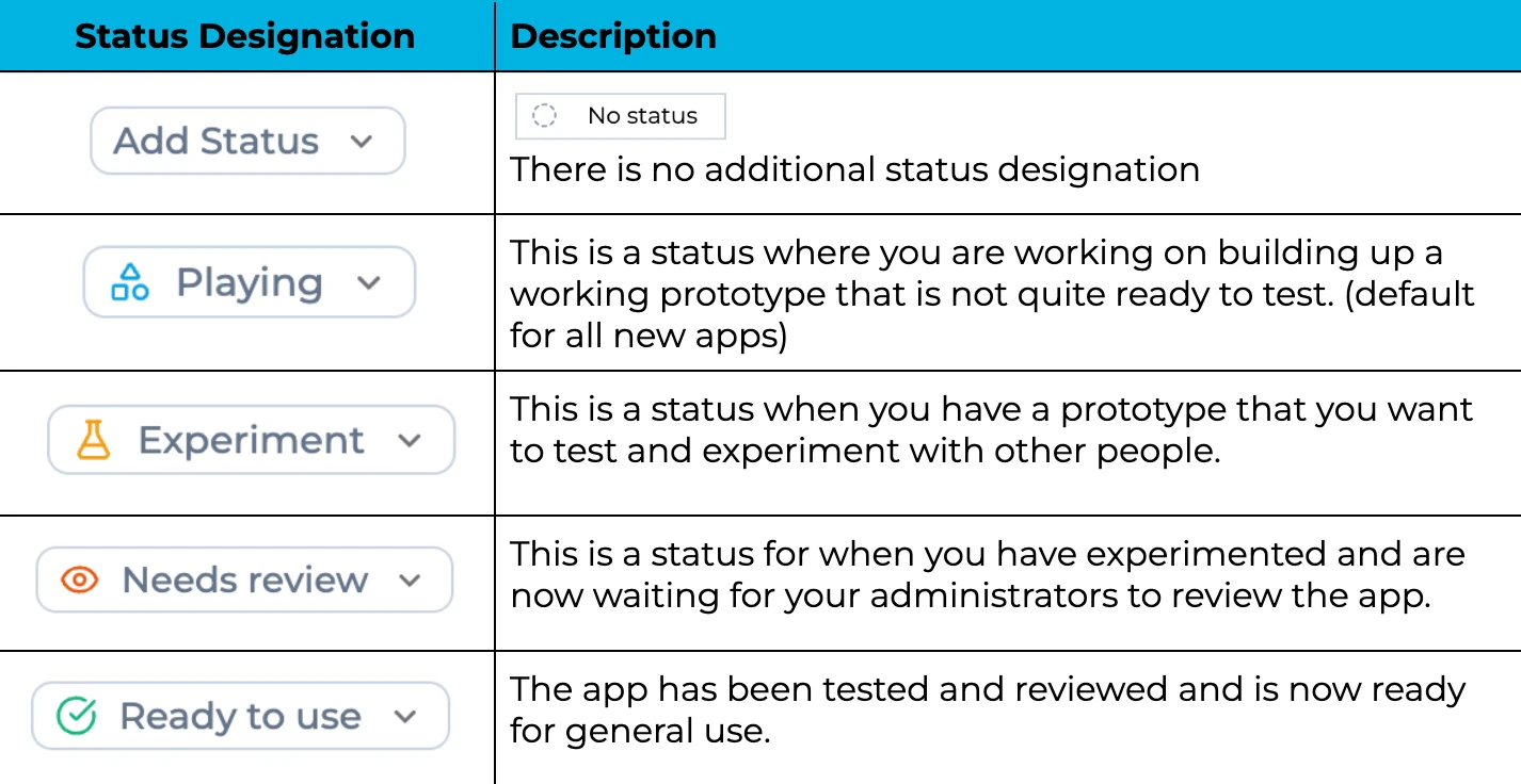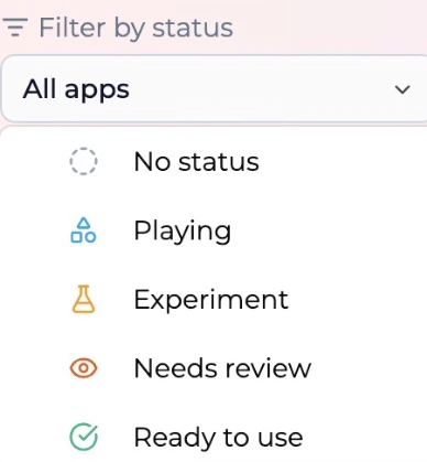 My team and I have built a bunch of Playlab apps. We are going to use this feature to help sort our apps into appropriate statuses.