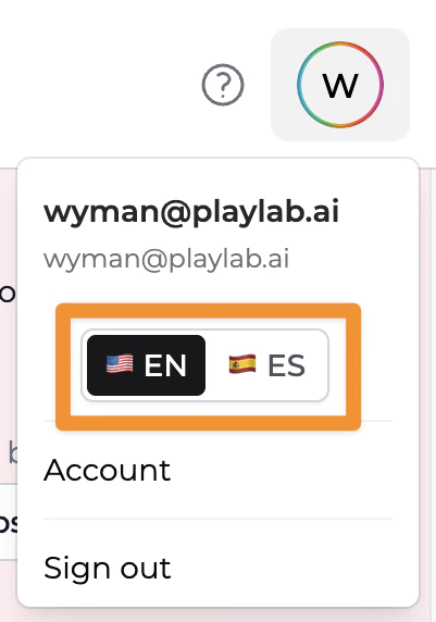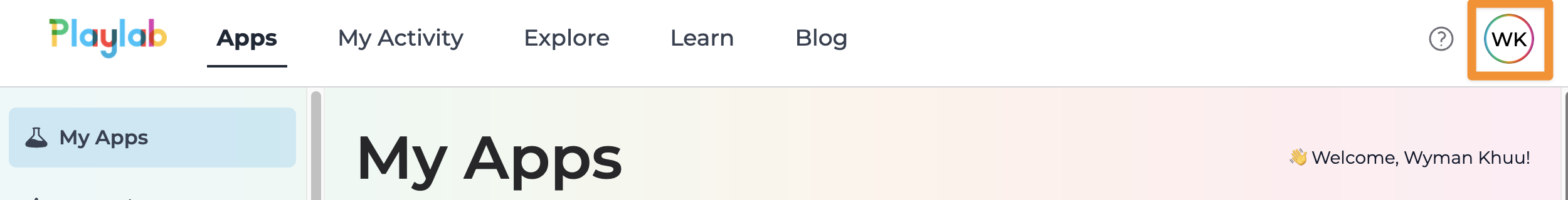 Navigate to your Playlab Account settings in the top right hand corner of Playlab.